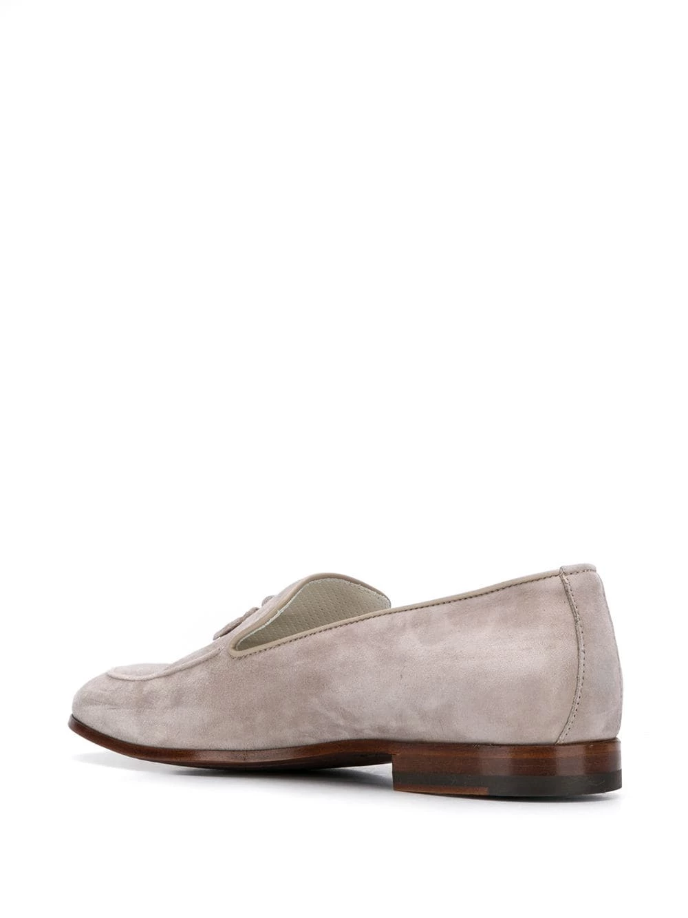 Bout en amande, semelle intérieure à logo, semelle plate en cuir. Couleur : gris.