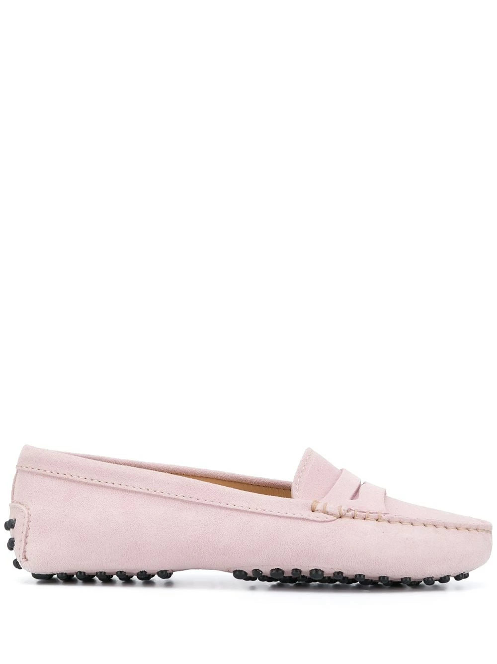 Entaille penny, design à enfiler, bout rond, semelle intérieure à logo. Couleur : rose. Matière : daim.