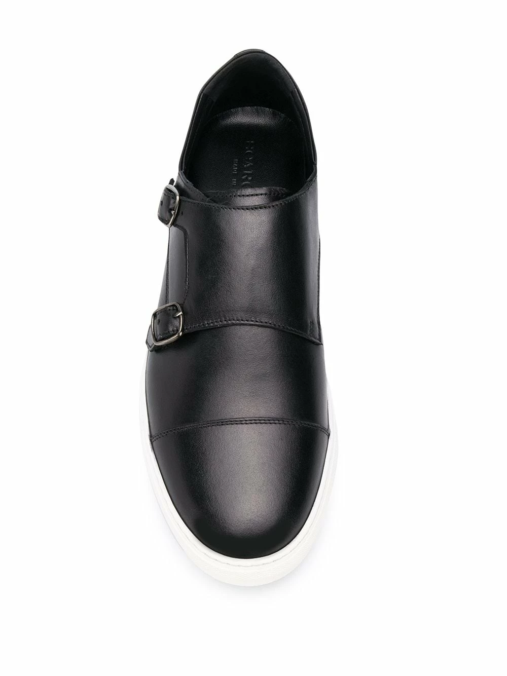 Bout rond, fermeture à boucle, semelle intérieure à logo, semelle plate en caoutchouc. Couleur : noir. Matière : Cuir de veau.