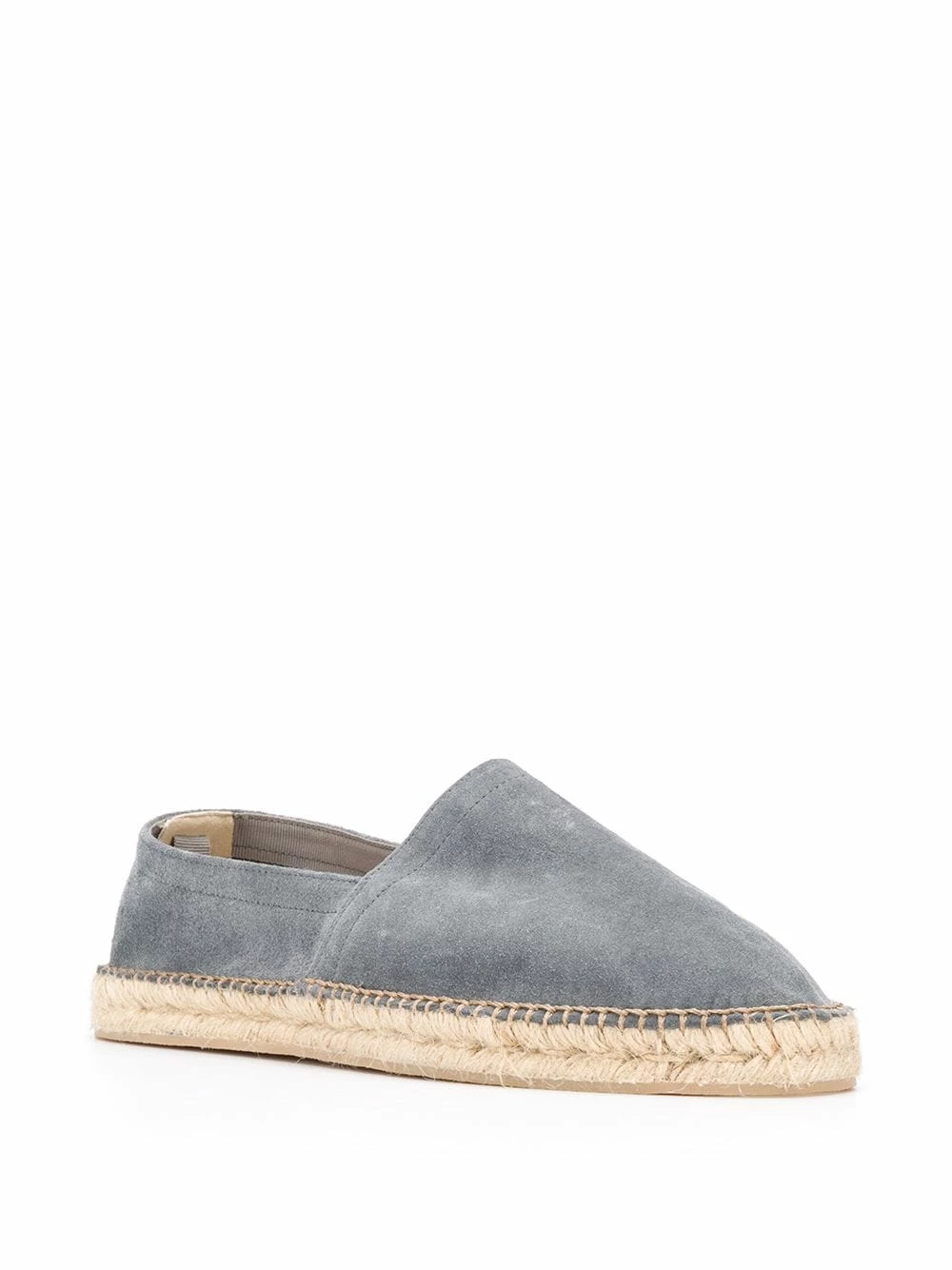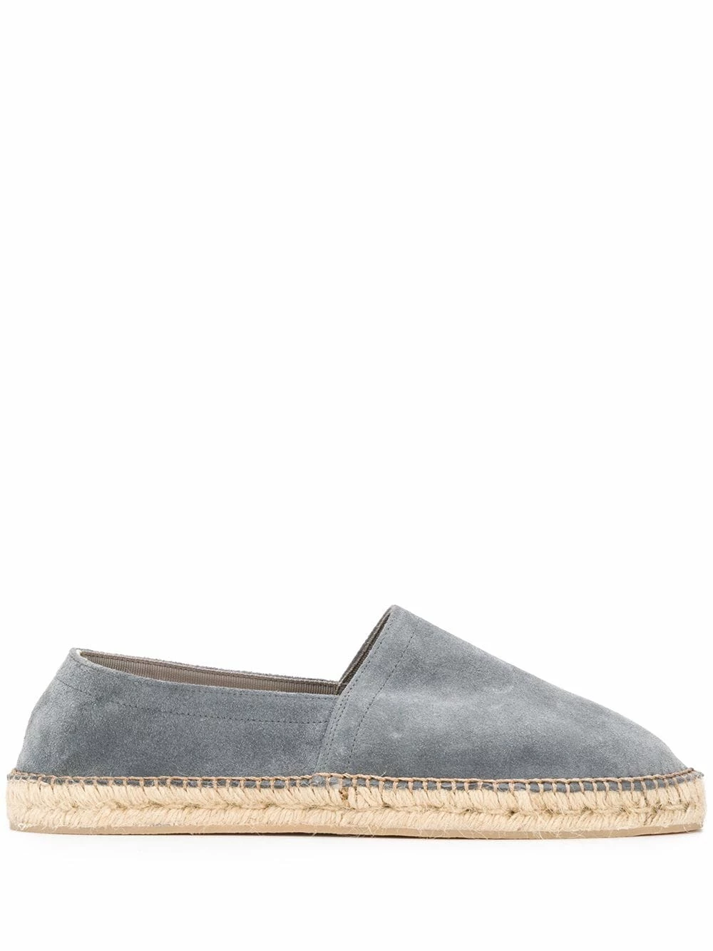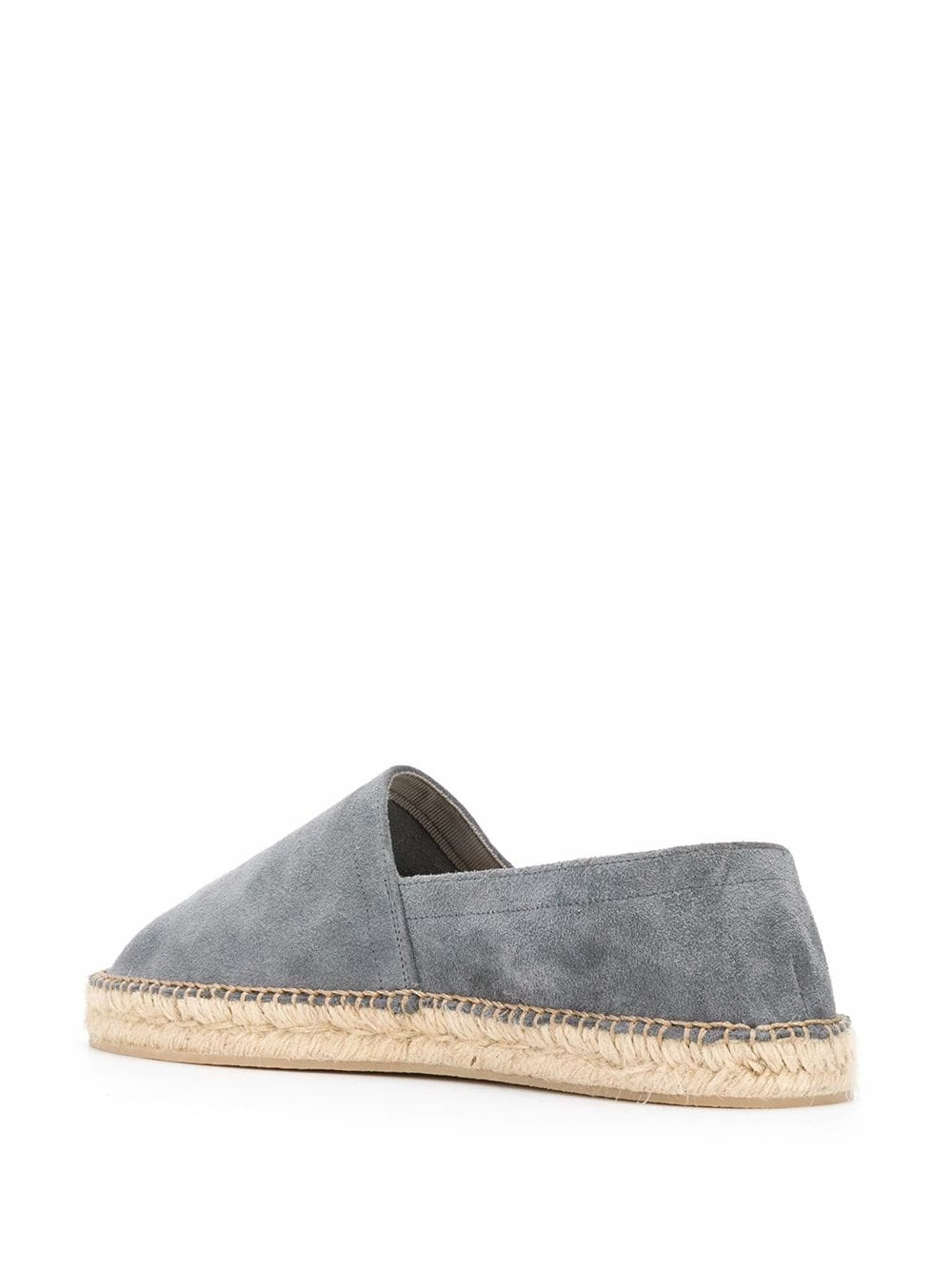 Bout rond, design à enfiler, semelle intérieure à logo, semelle en raphia tressé. Matière : daim.