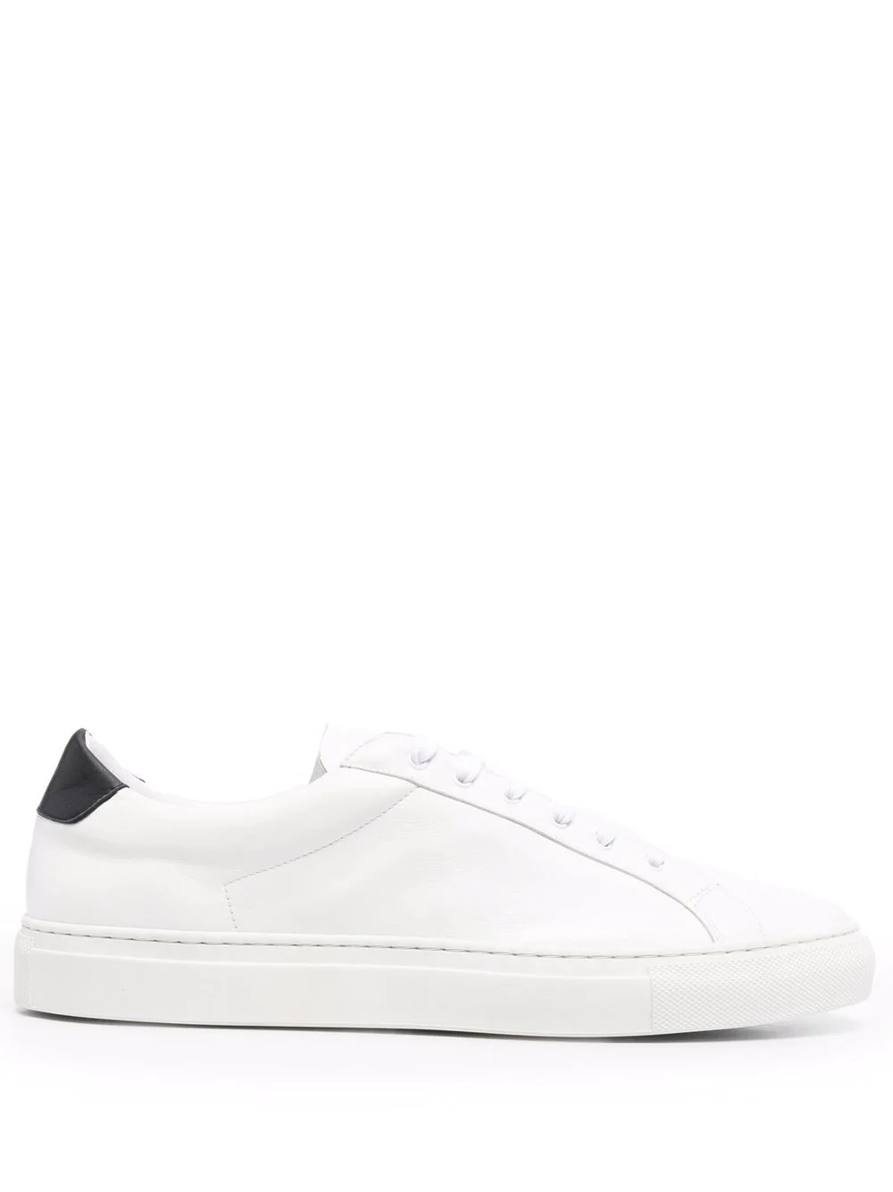Languette à patch logo, contrefort contrastant, bout rond, fermeture à lacer sur le devant, semelle intérieure à logo, semelle plate en caoutchouc. Matière : cuir.
