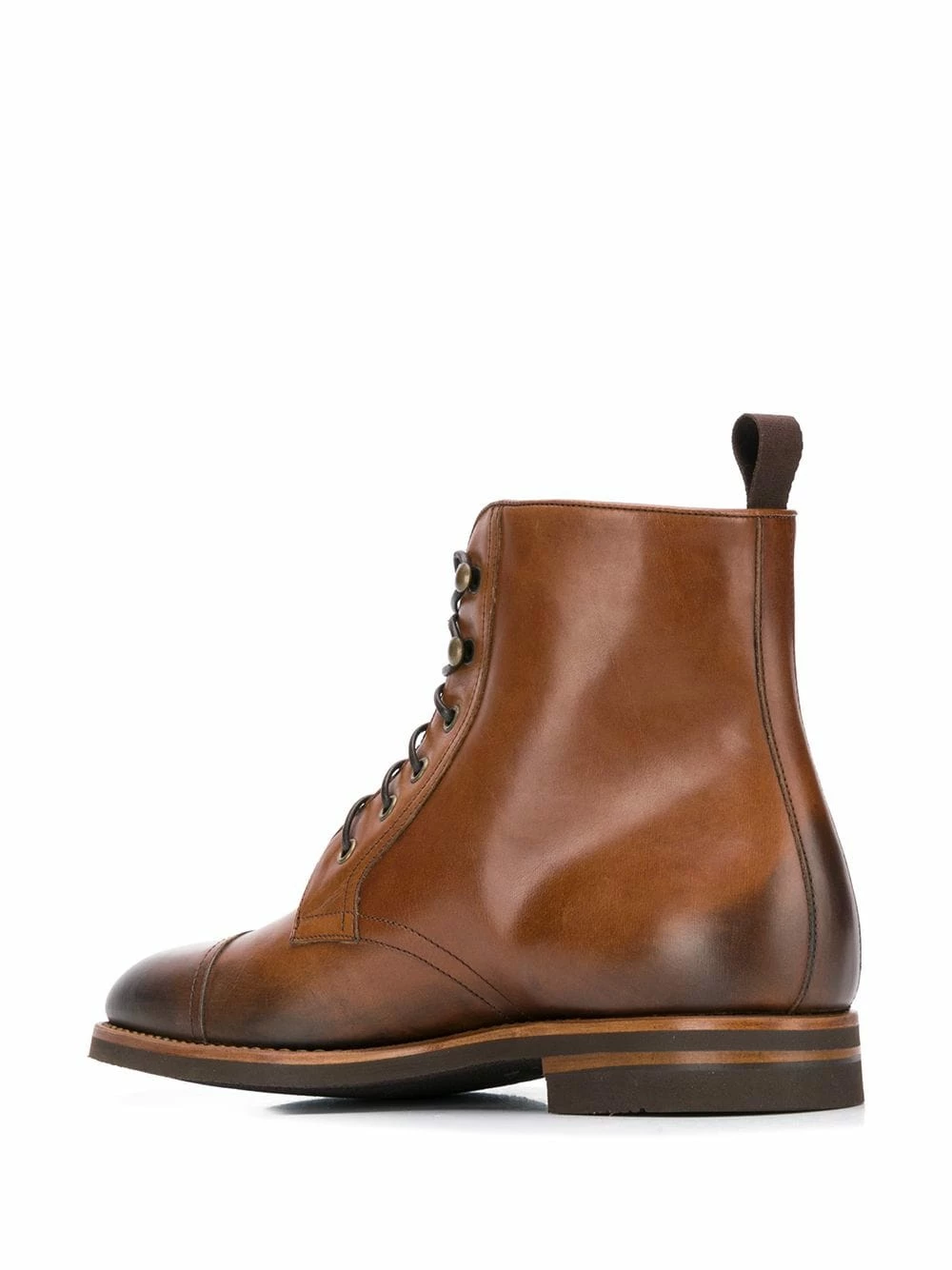Bottines à lacets en cuir de veau Scarosso avec bout en amande, fermeture à lacer sur le devant, languette arrière et petit talon.