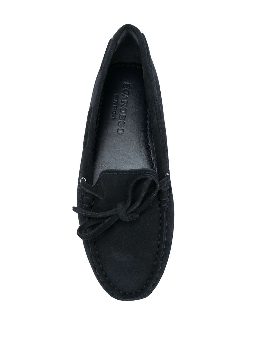 Mocassins Giulia à détail de laçage Scarosso avec design à enfiler, détail de laçage, nœud sur le devant, bout rond et semelle crantée en caoutchouc. Couleur : bleu.
