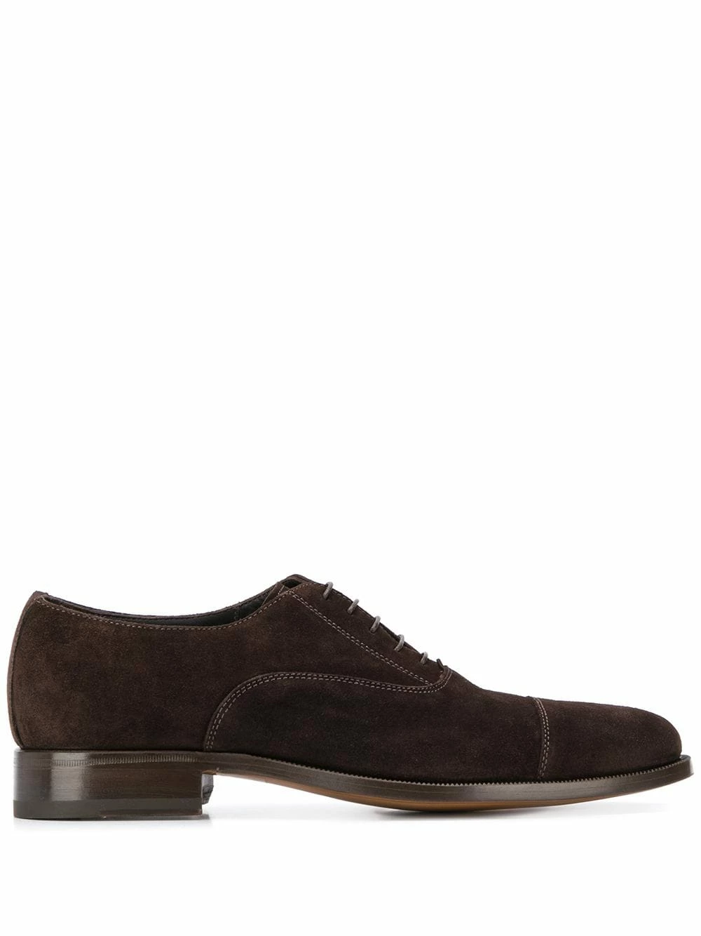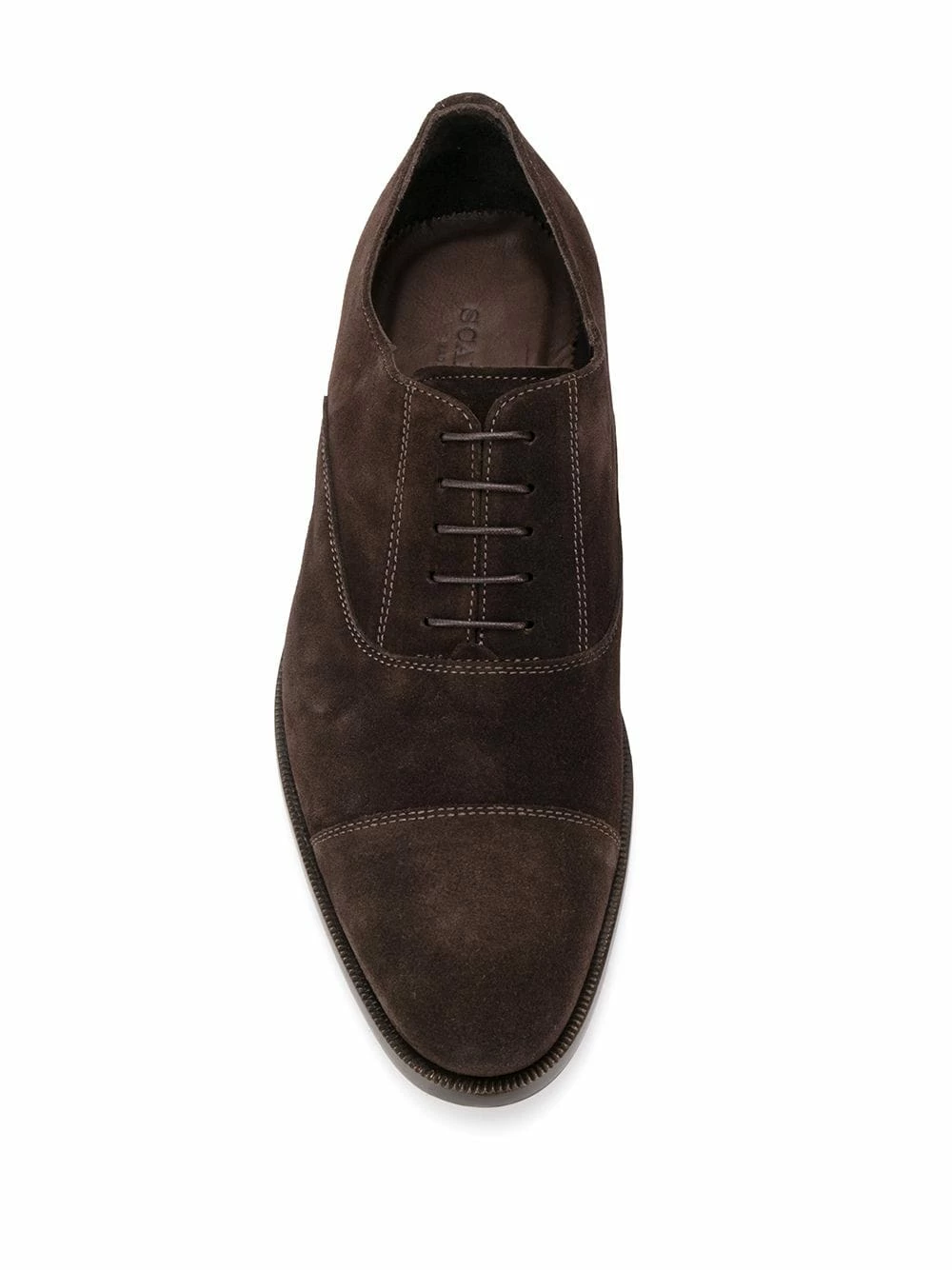 Derbies à bout pointu en daim Scarosso avec fermeture à lacets, semelle plate et semelle intérieure à logo.