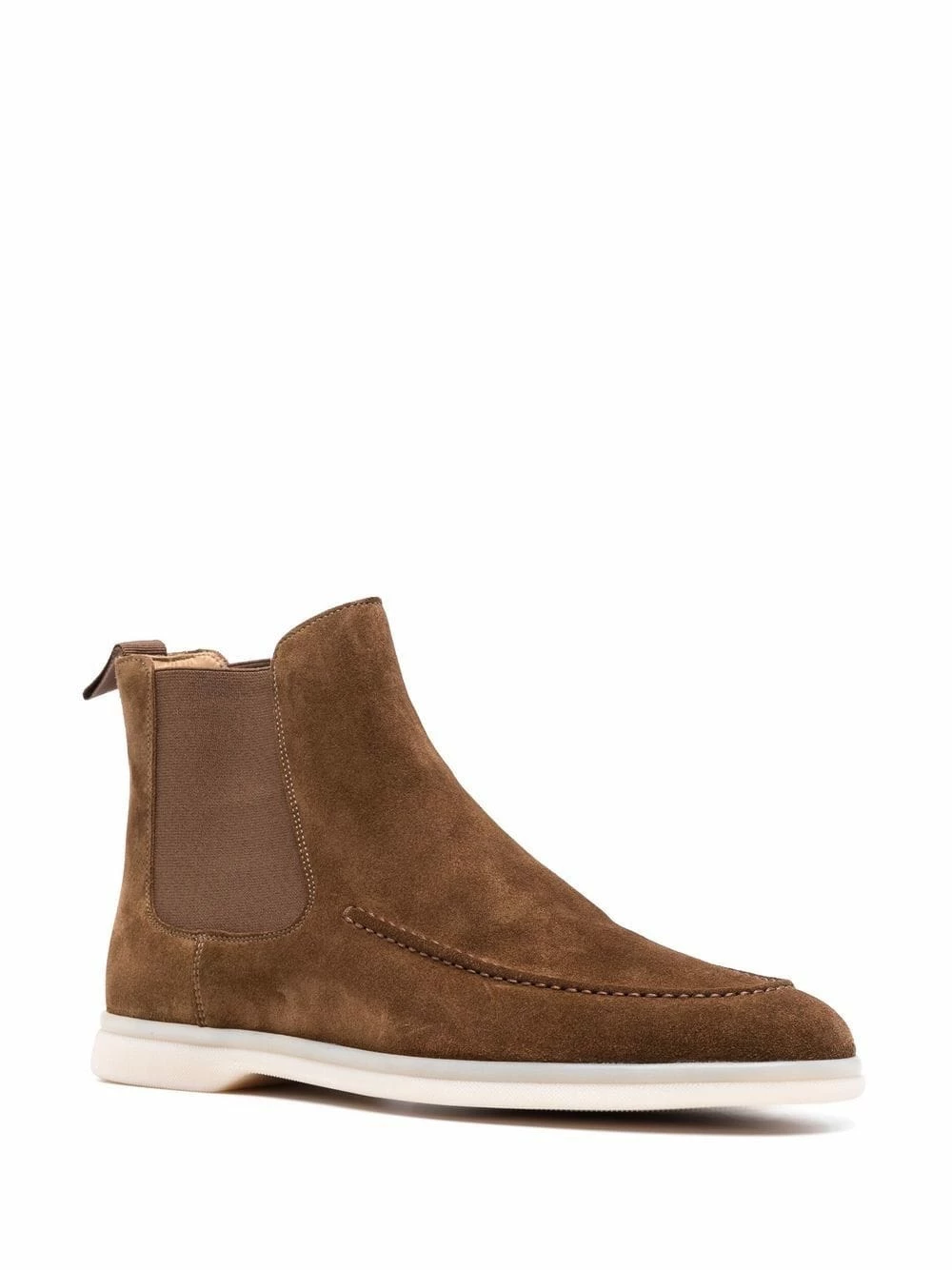 Languette d’enfilage au talon, empiècements élastiqués sur les côtés, hauteur cheville, bout rond, semelle plate en caoutchouc. Matière : cuir.