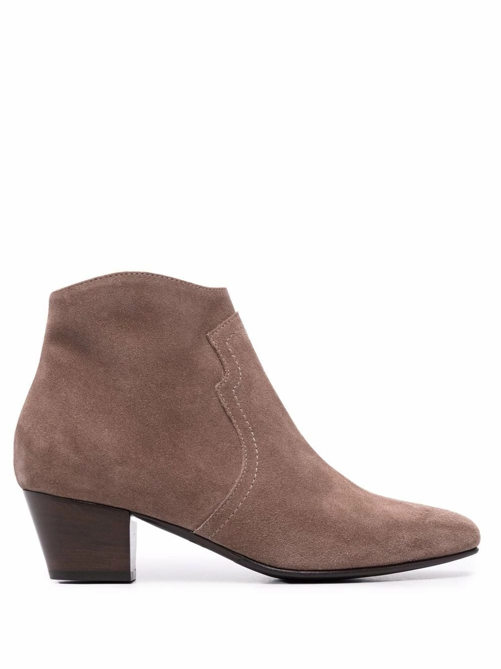 Doublure en cuir, bout en amande, fermeture zippée sur le côté, semelle intérieure à logo, talon mi-haut épais.