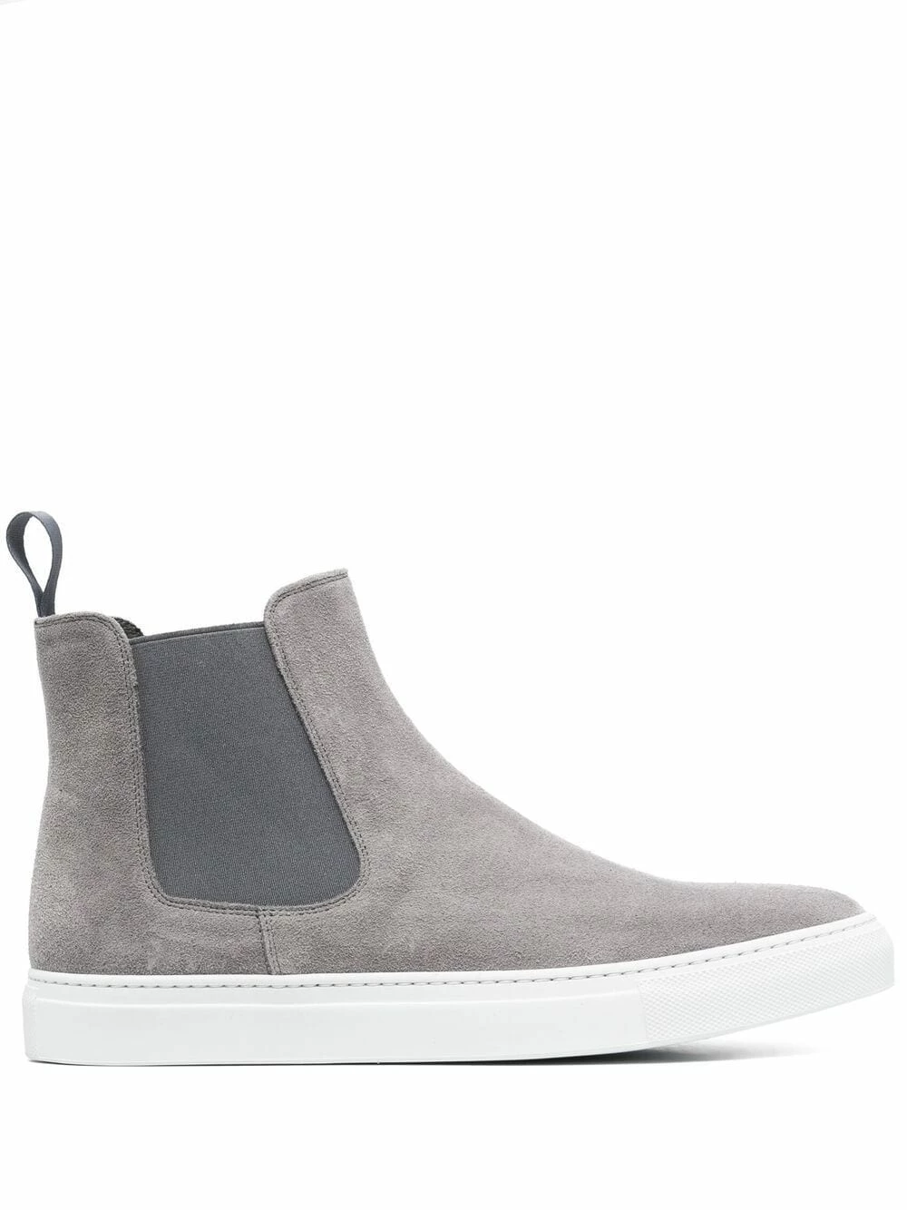 Empiècements élastiqués sur les côtés, languette d’enfilage au talon, bout rond, semelle intérieure à logo, semelle plate en caoutchouc. Couleur : gris.