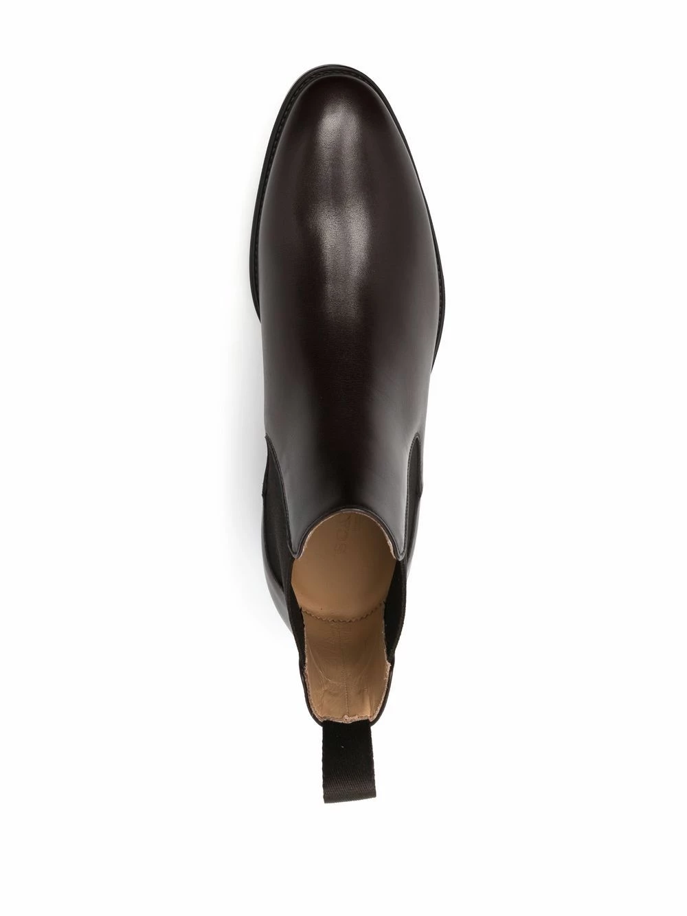 Languette d’enfilage au talon, empiècements élastiqués sur les côtés, bout rond, semelle intérieure griffée, semelle en cuir, petit talon, design à enfiler. Matière : cuir.
