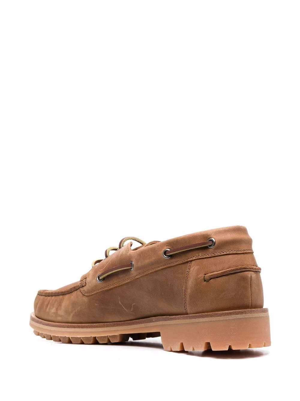 Détails d’œillets, détail de laçage, design à enfiler, bout rond, semelle crantée en caoutchouc, semelle intérieure à logo.