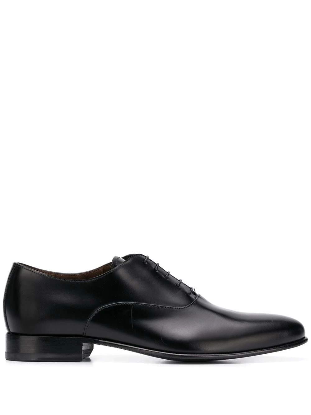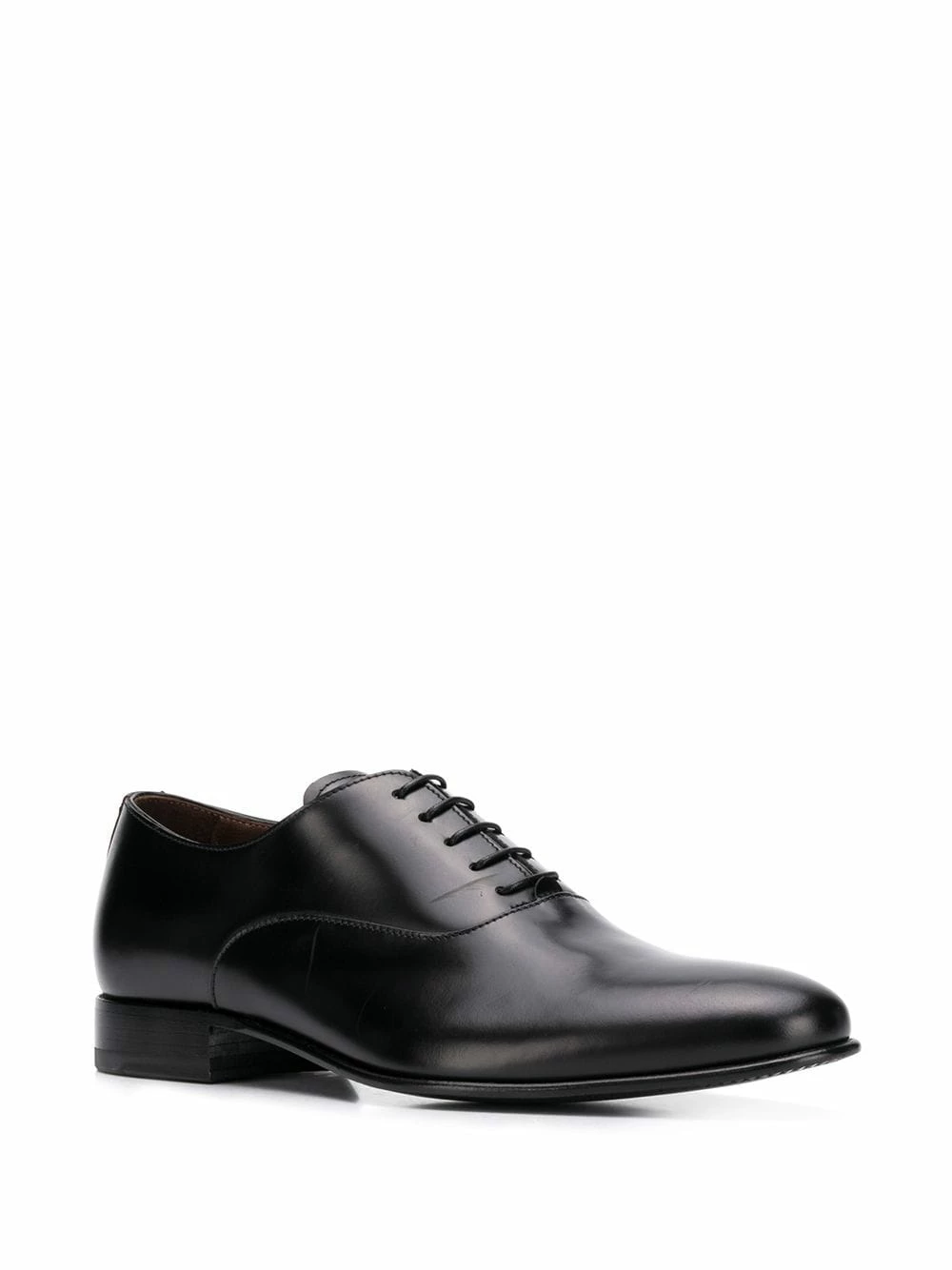 Bout en amande, fermeture à lacer sur le devant, semelle intérieure à logo, semelle plate en cuir. Couleur : noir.