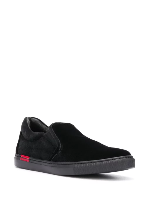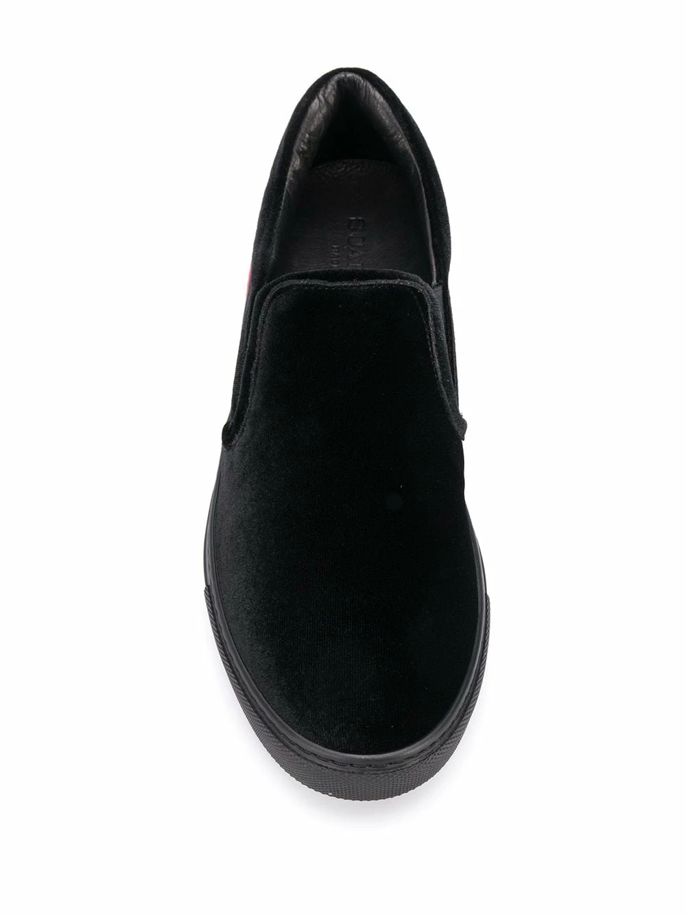 Design à enfiler, semelle plate en caoutchouc, bout en amande. Couleur : bleu.