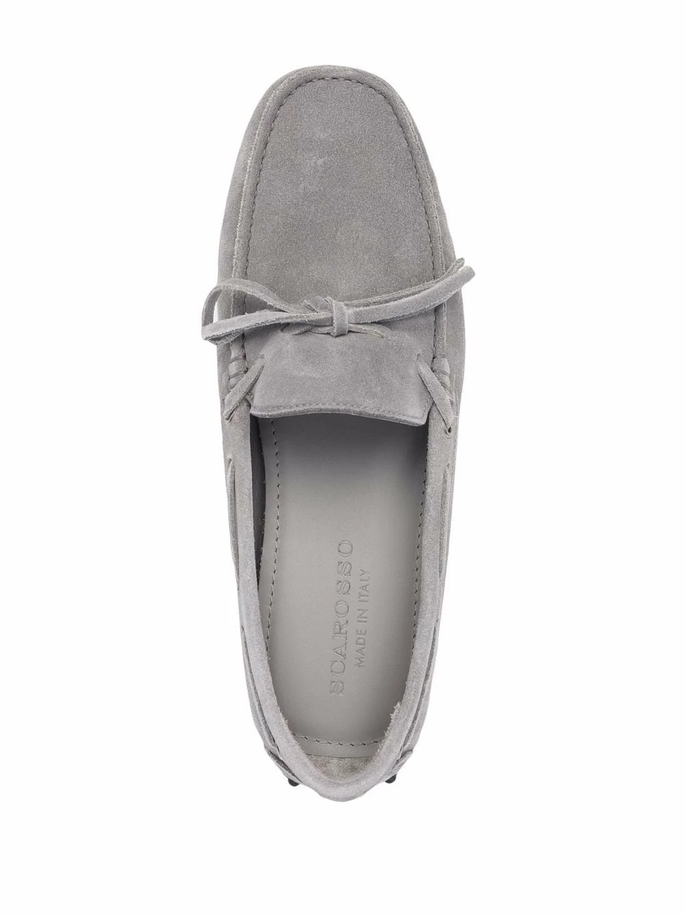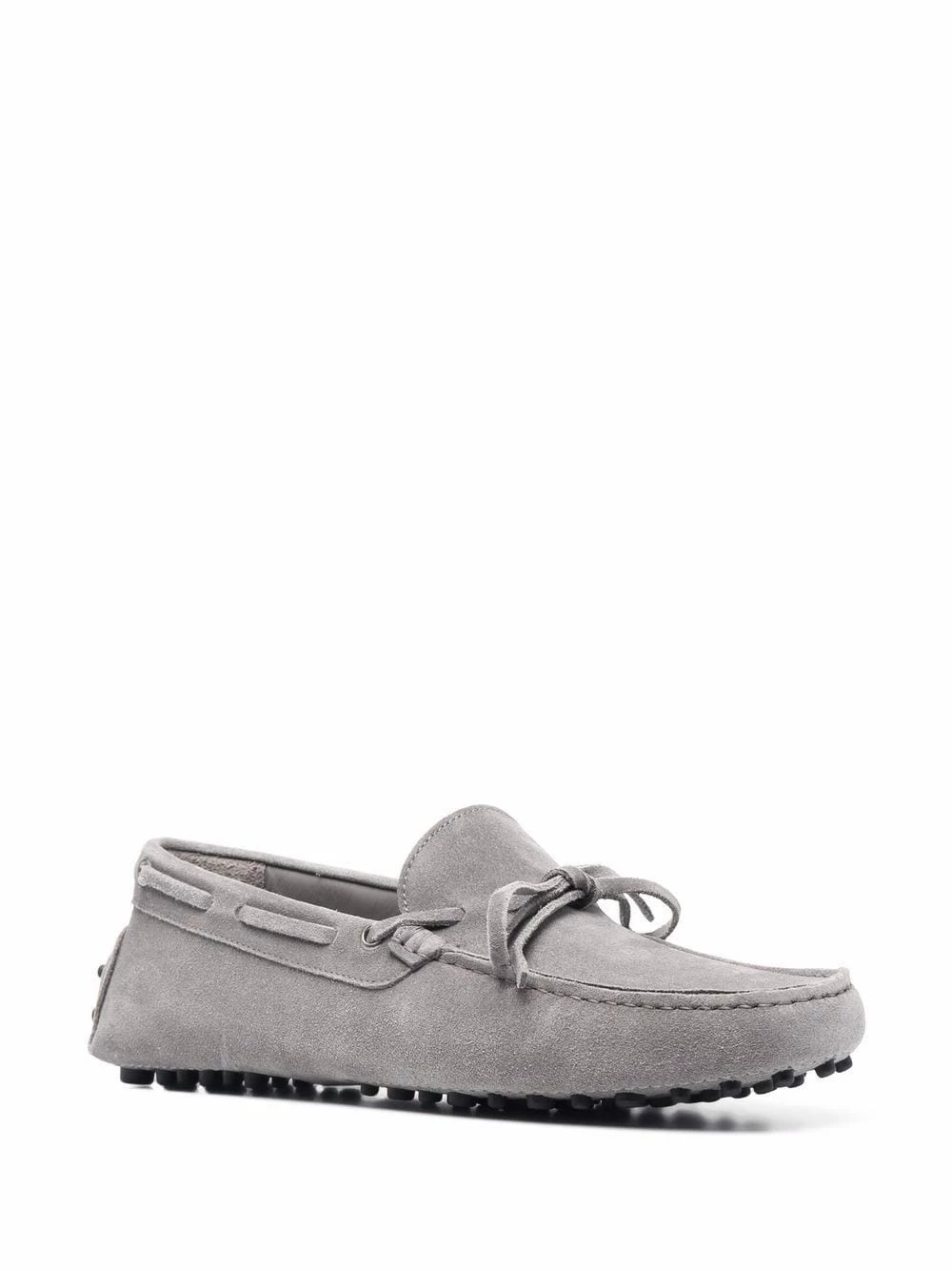 Détail de nœud, bout carré, coutures ton sur ton, semelle intérieure à logo. Couleur : gris.
