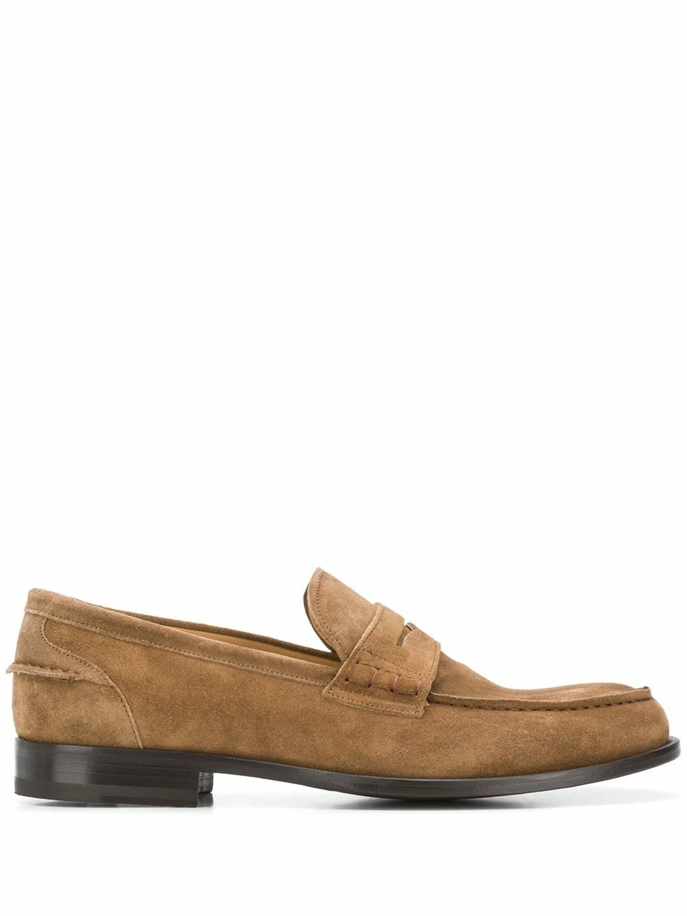Bout en amande, design à enfiler, semelle intérieure à logo, petit talon bottier. Matière : daim.