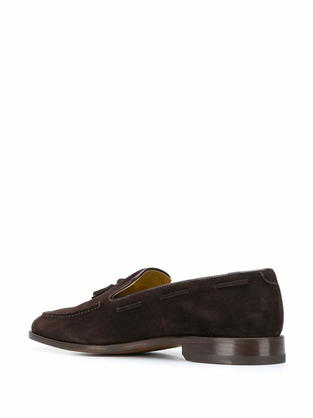 Mocassins à glands en daim Scarosso avec pompons, petit talon et bout carré. Couleur : marron.
