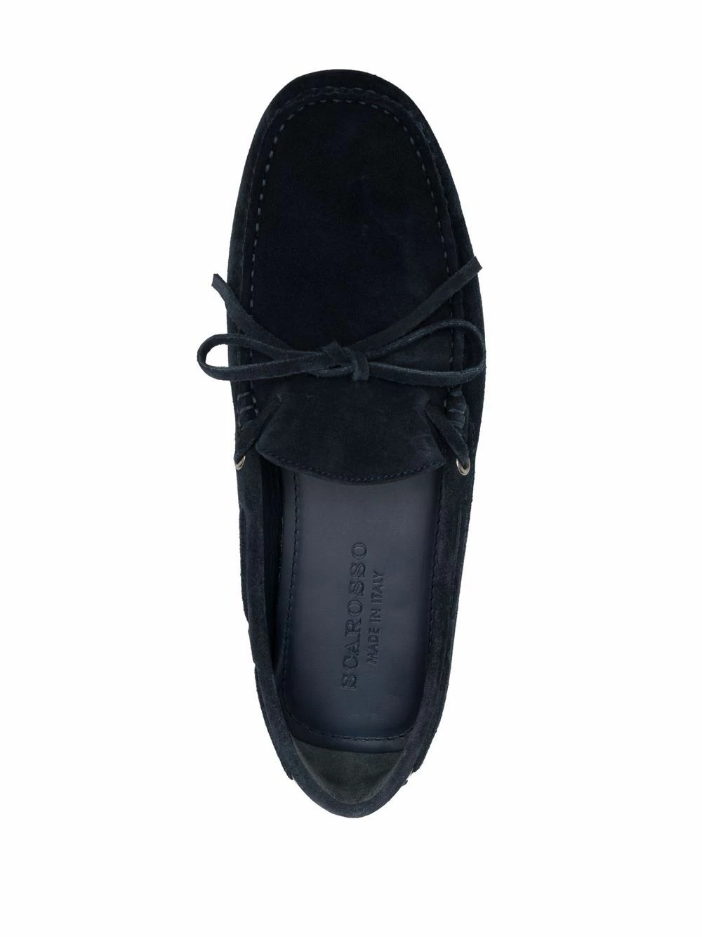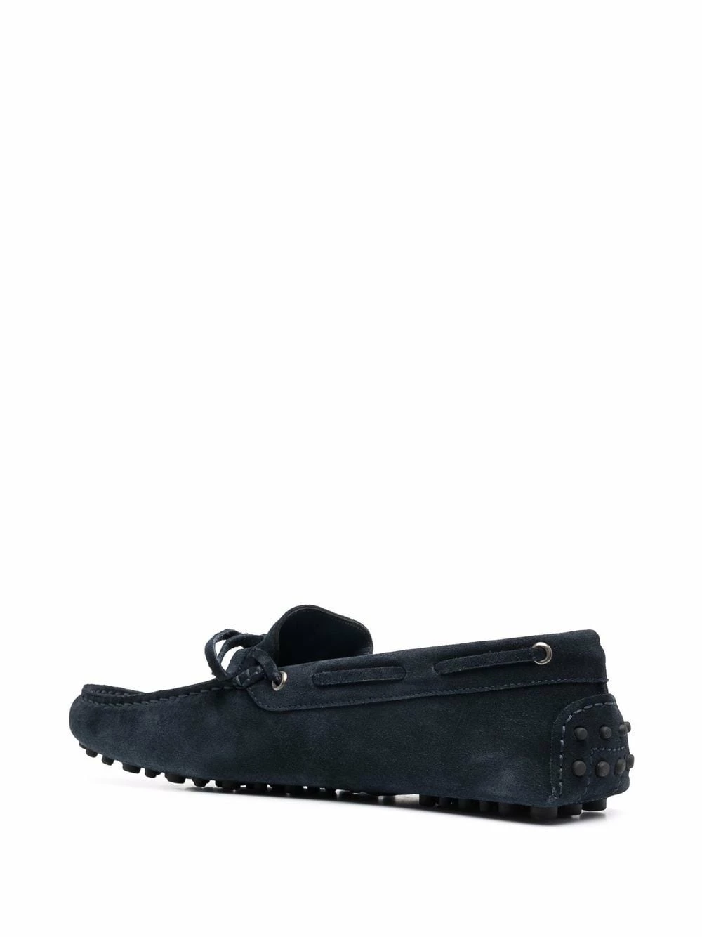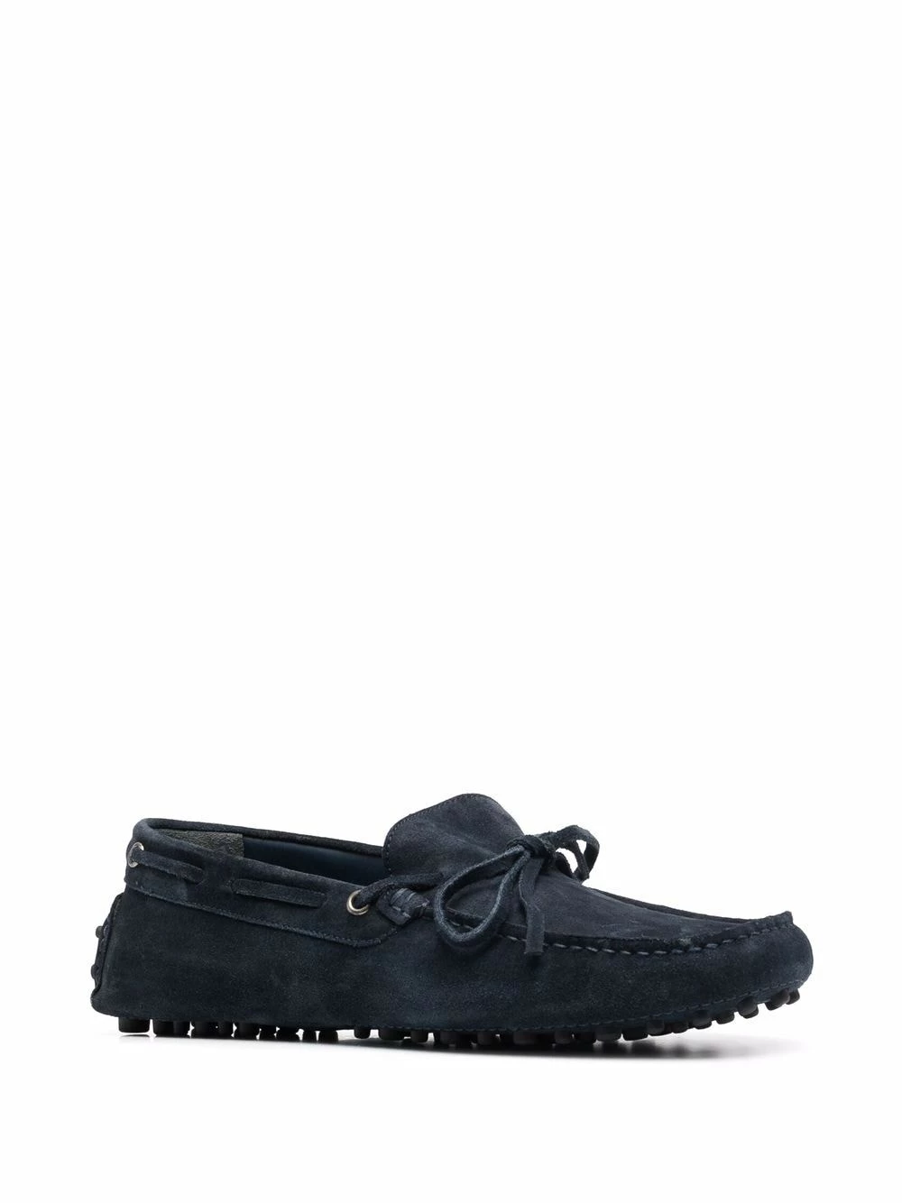 Bout en amande, semelle intérieure à logo, design à enfiler, fermeture à nouer sur le devant, semelle en caoutchouc. Couleur : bleu. Matière : daim.