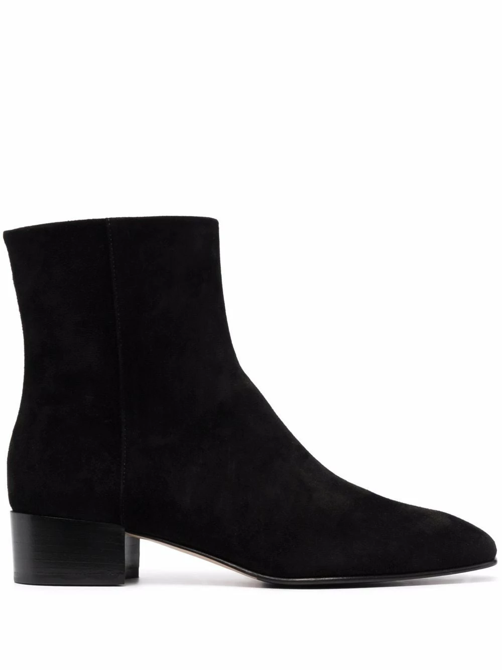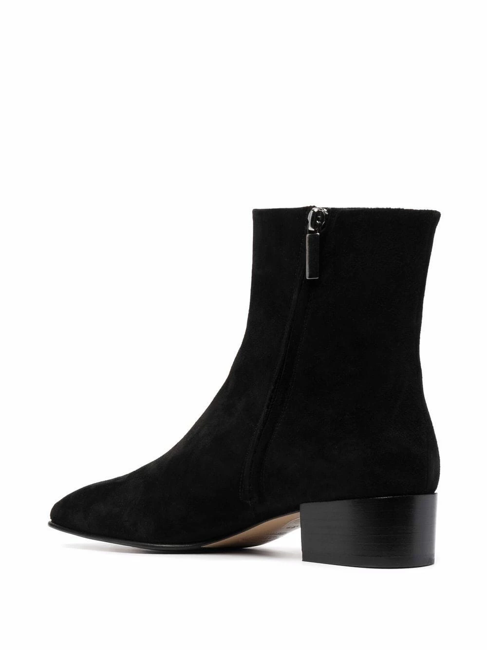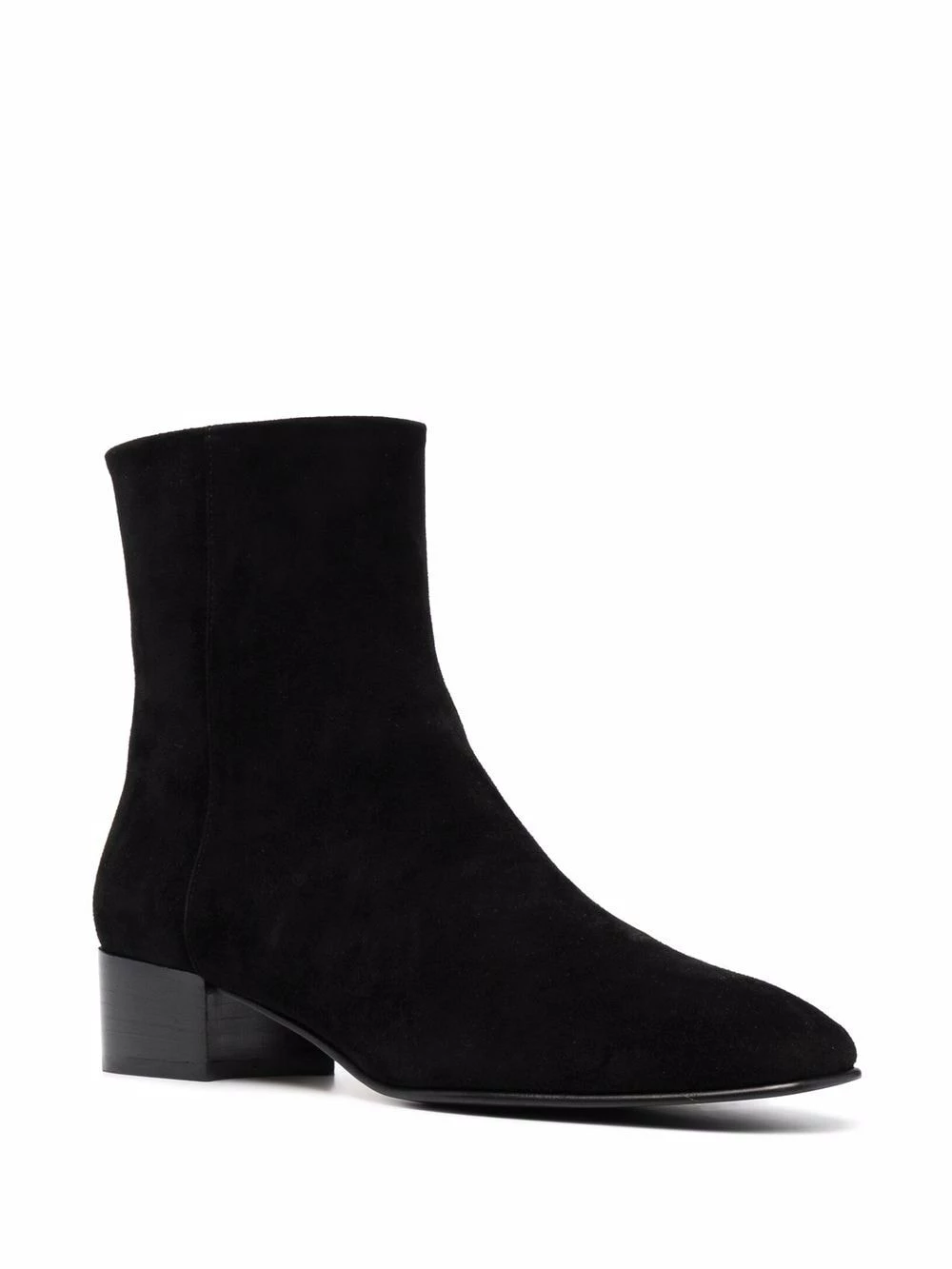 Bout carré, fermeture zippée sur le côté, coutures ton sur ton. Couleur : noir. Matière : cuir.
