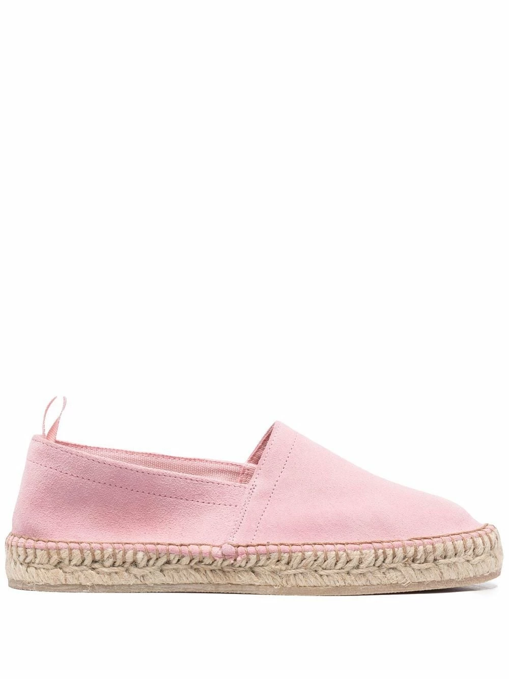 Bout rond, semelle en raphia tressé, semelle intérieure à logo, languette d’enfilage au talon. Couleur : rose.