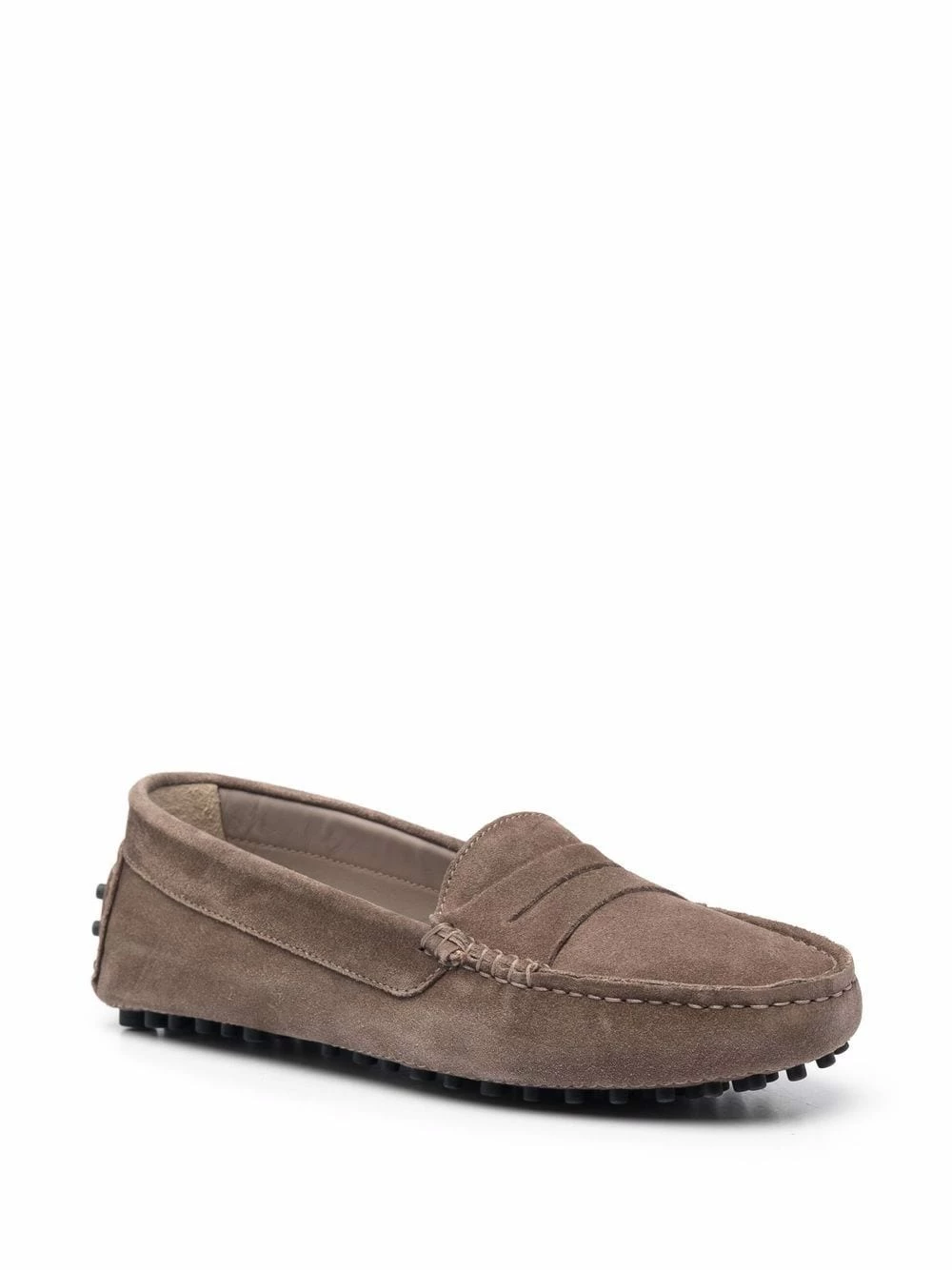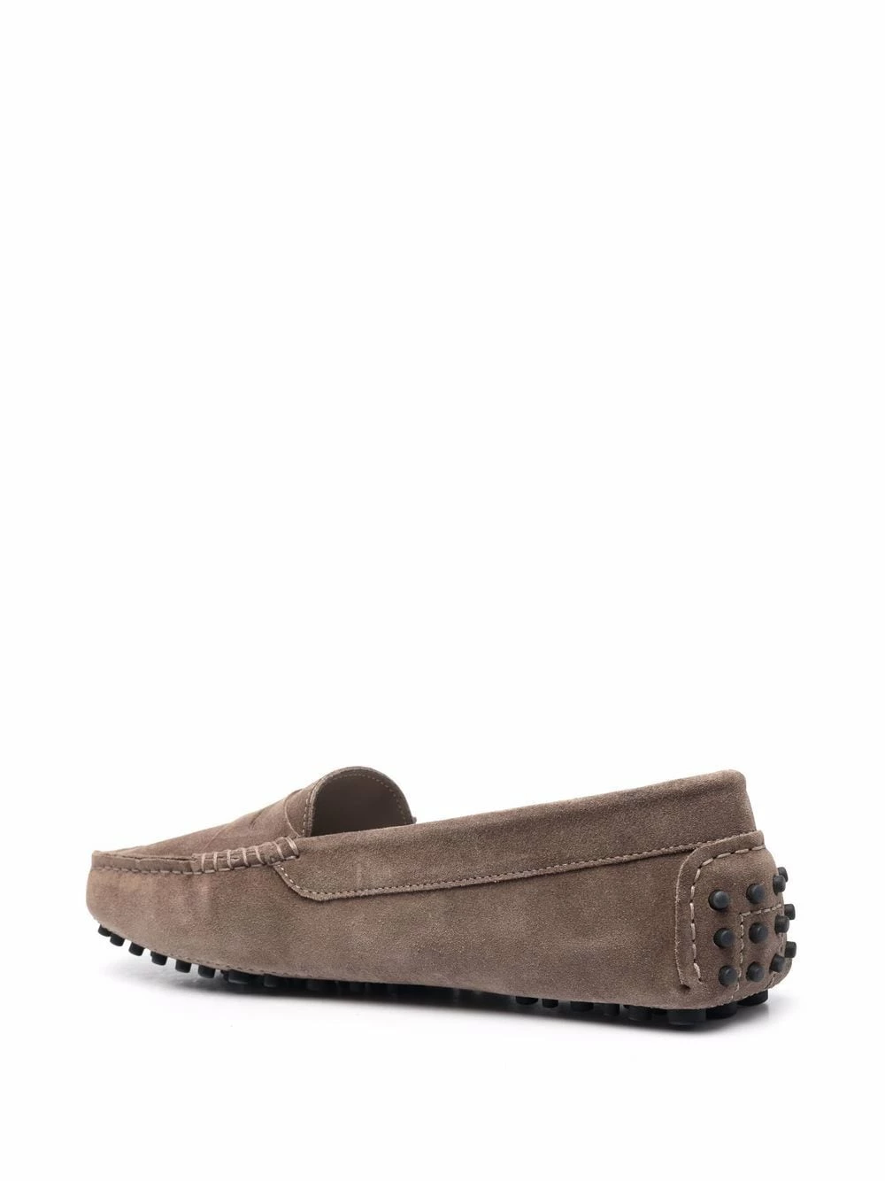 Coutures ton sur ton, semelle crantée en caoutchouc, bout en amande, design à enfiler, semelle intérieure à logo. Matière : daim.