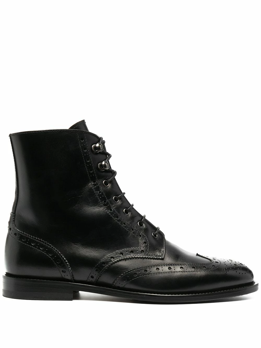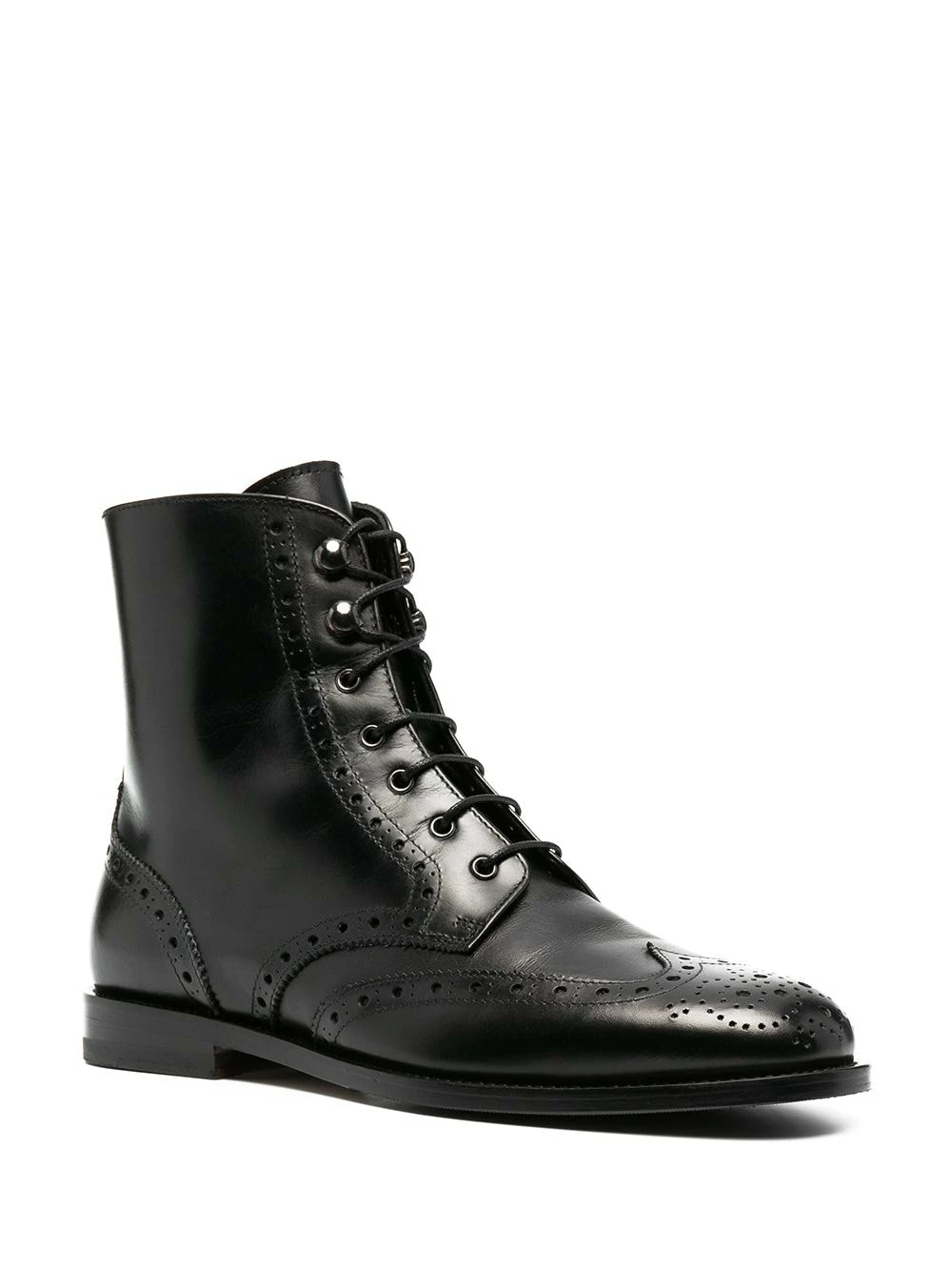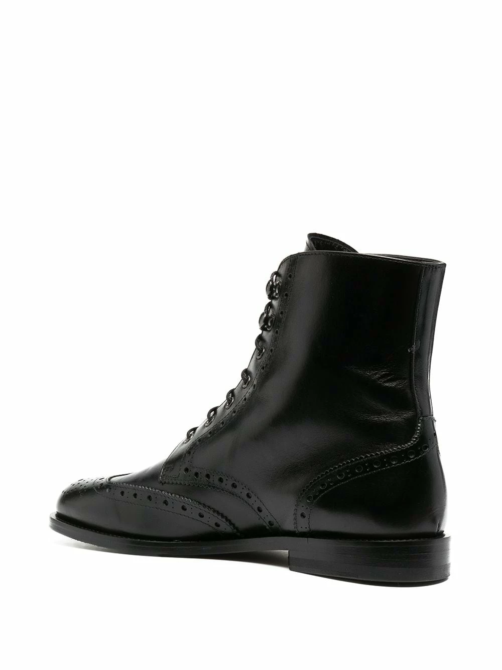 Détail façon richelieu, fermeture à lacer sur le devant, bout rond, semelle plate en caoutchouc. Couleur : noir. Matière : cuir.