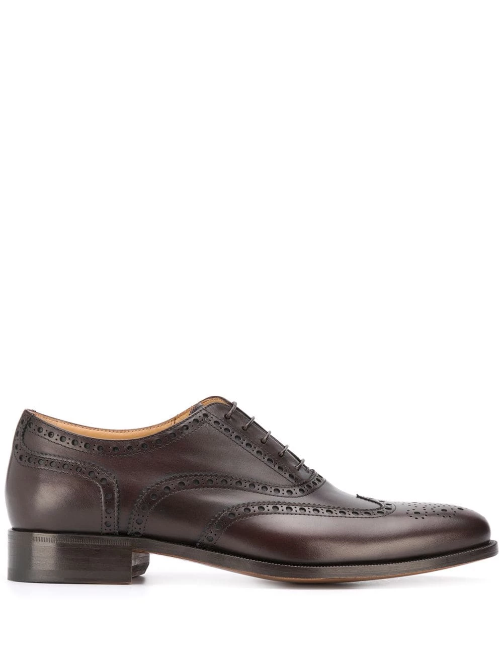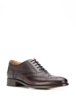 Bout en amande, fermeture à lacer sur le devant, semelle intérieure à logo, petit talon. Couleur : marron.