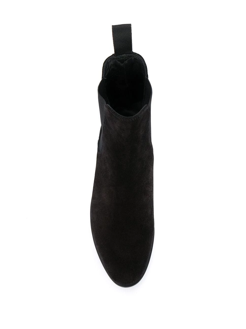 Bout en amande, empiècements élastiqués sur les côtés, languette d’enfilage au talon, petit talon épais. Couleur : noir. Matière : cuir.