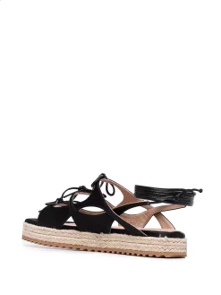 Doublure en cuir, bout ouvert, fermeture à lacer au dos, semelle intérieure à logo, semelle en raphia tressé.